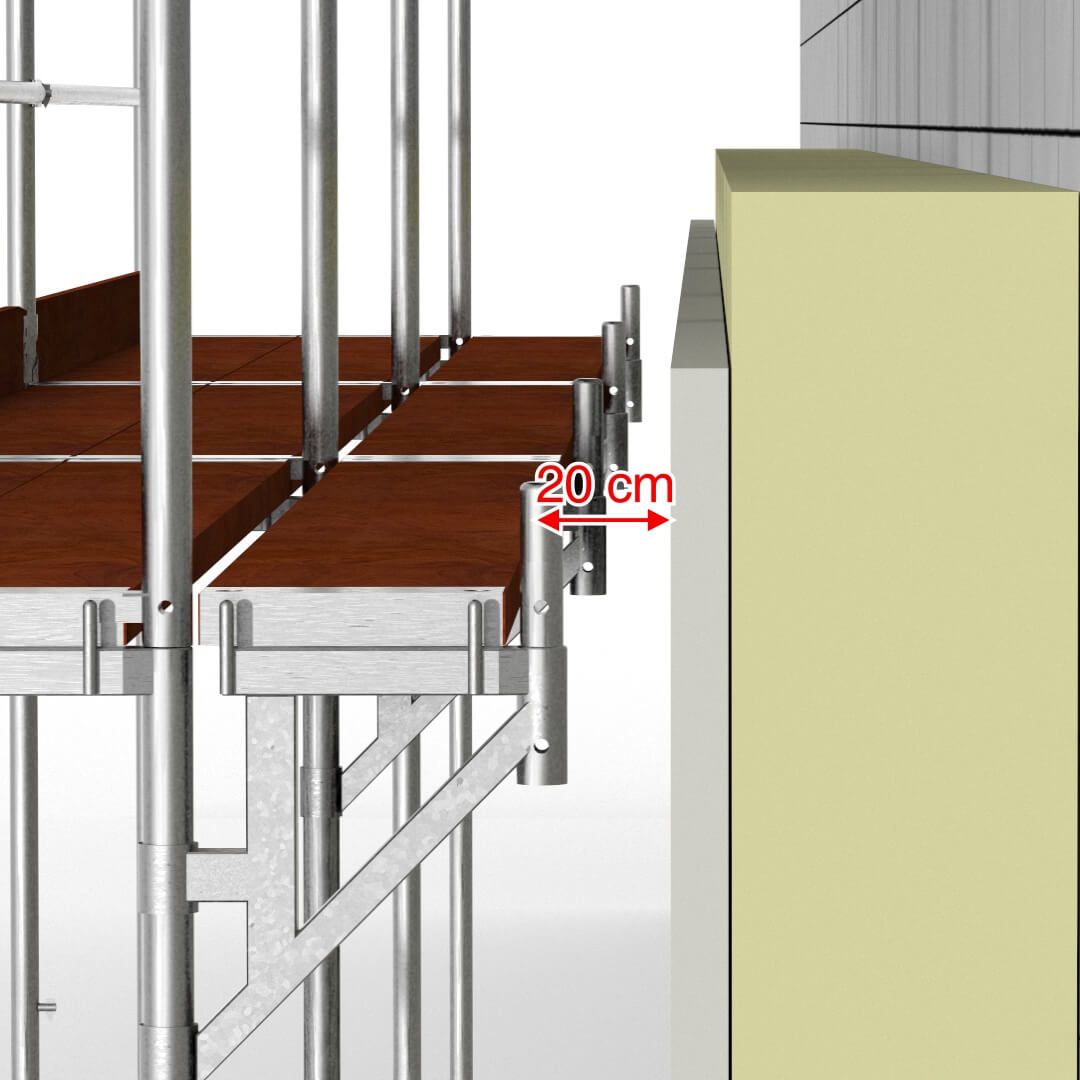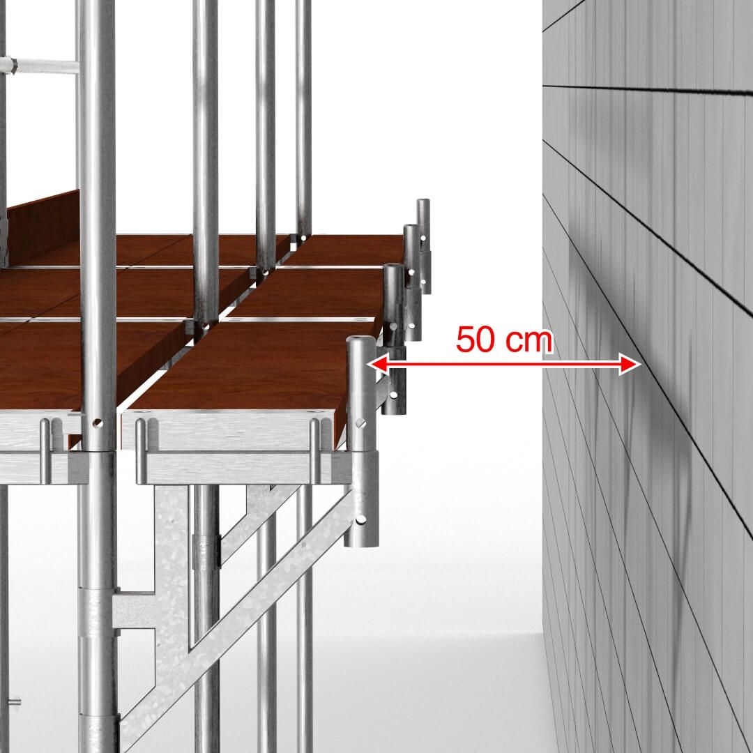 Sie können den gesetzlich vorgeschriebenen Arbeitsabstand zur Fassade problemlos und BG Konform anpassen ohne dass das Gerüst aufwendig umgebaut werden muss.