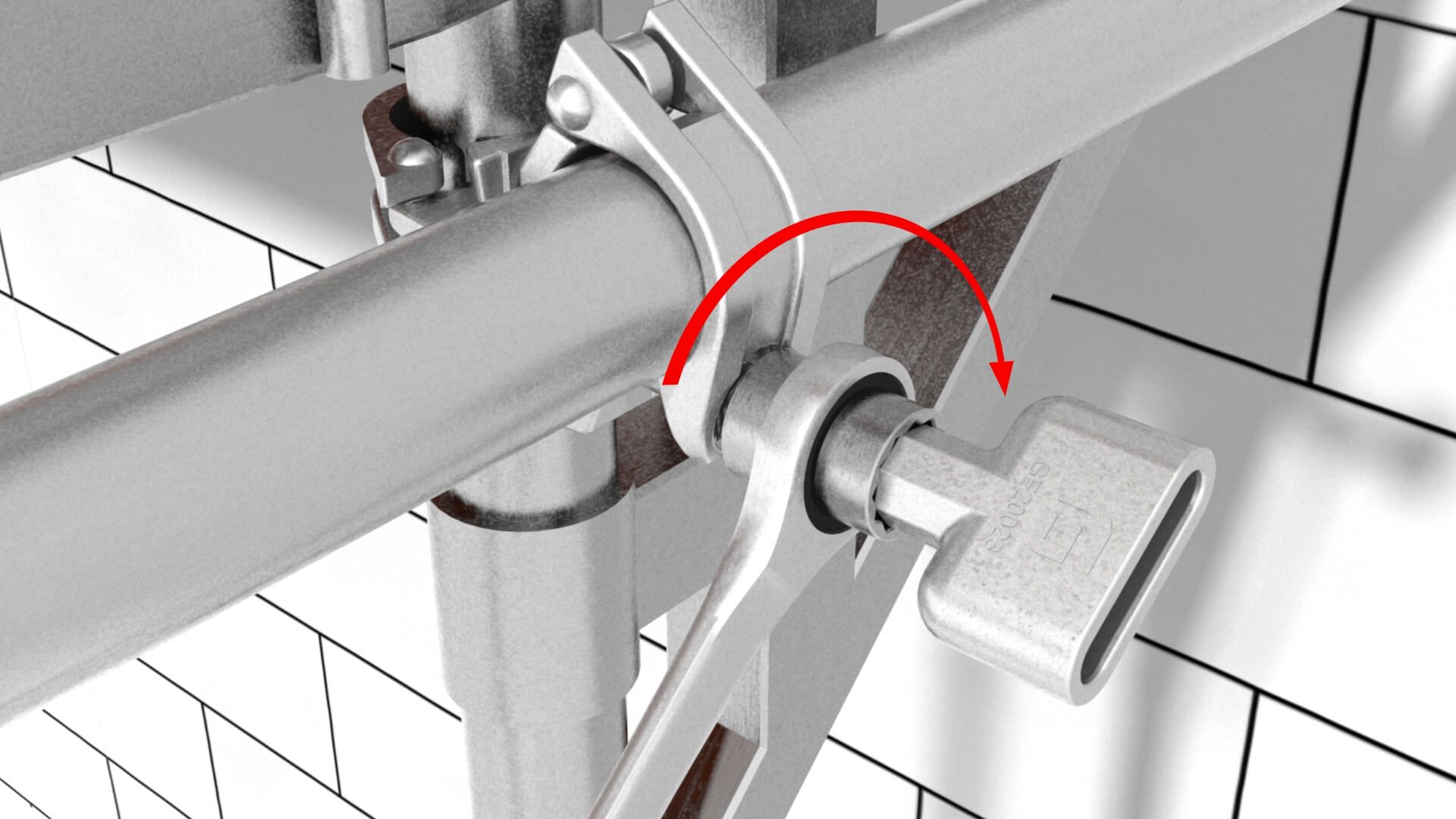 Benutzen Sie die Freie Seite der Gerüstbauratsche um die Kupplung zu befestigen.