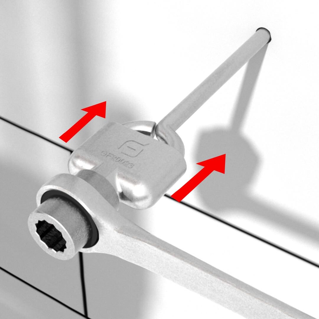 Stecken Sie die Ringösen-Nuss in die passende Aufnahme der Gerüstbauratsche.